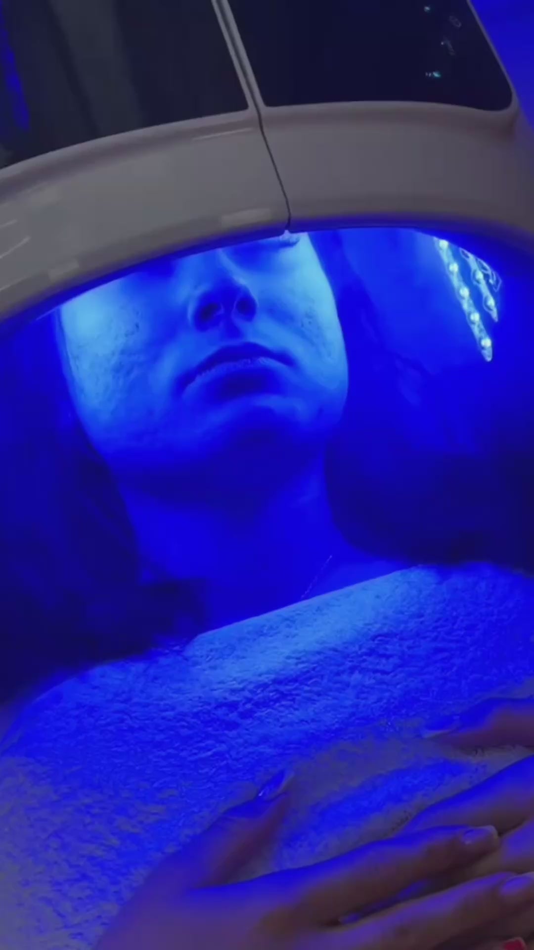 💙 Blaues Licht – tötet Akne-Bakterien ab und beruhigt gereizte Haut.